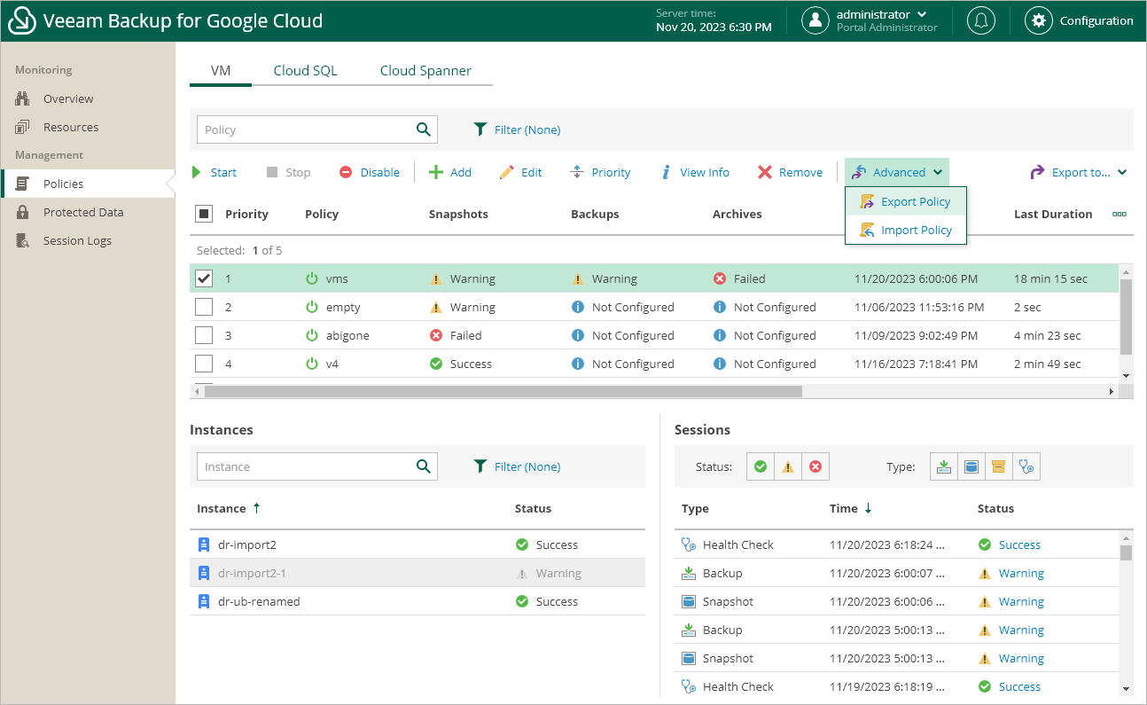 Exporting and Importing Backup Policies
