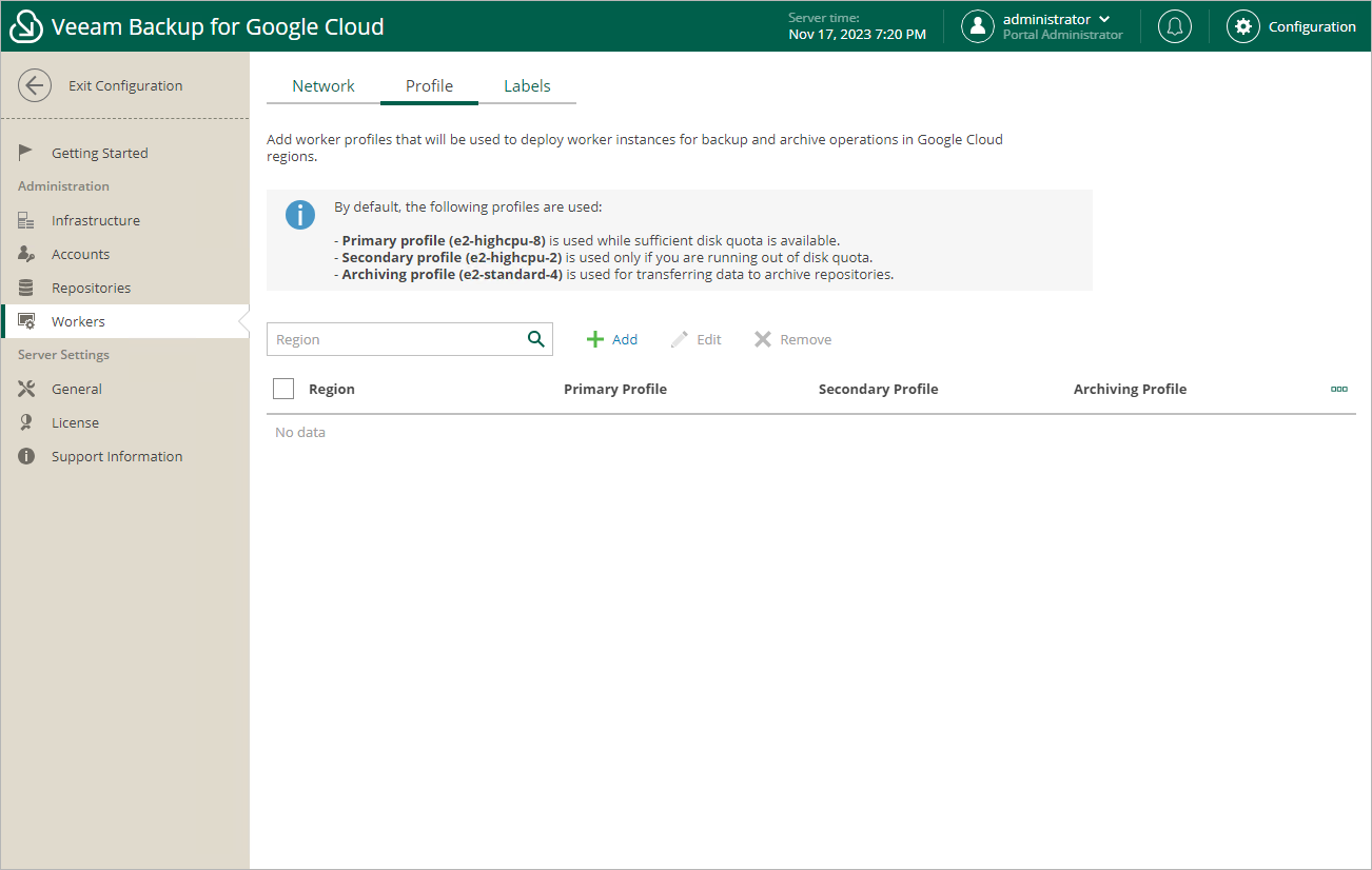 This is an archive version of the document. To get the most up-to-date information, see the current version. Step 1. Launch Add Worker Profiles Wizard To launch the Add Worker Profiles wizard, do the following:Switch to the Configuration page.Navigate to Workers > Profile.Click Add.