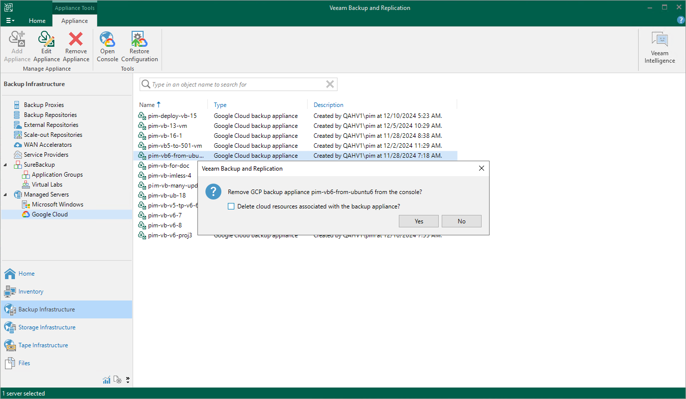 Google Cloud Plug-in for Veeam Backup & Replication allows you to permanently remove backup appliances from the backup infrastructure.
