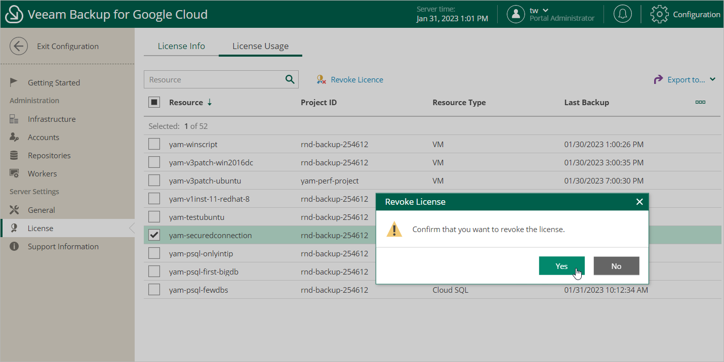 Revoking License Units Using Veeam Backup for Google Cloud Web UI