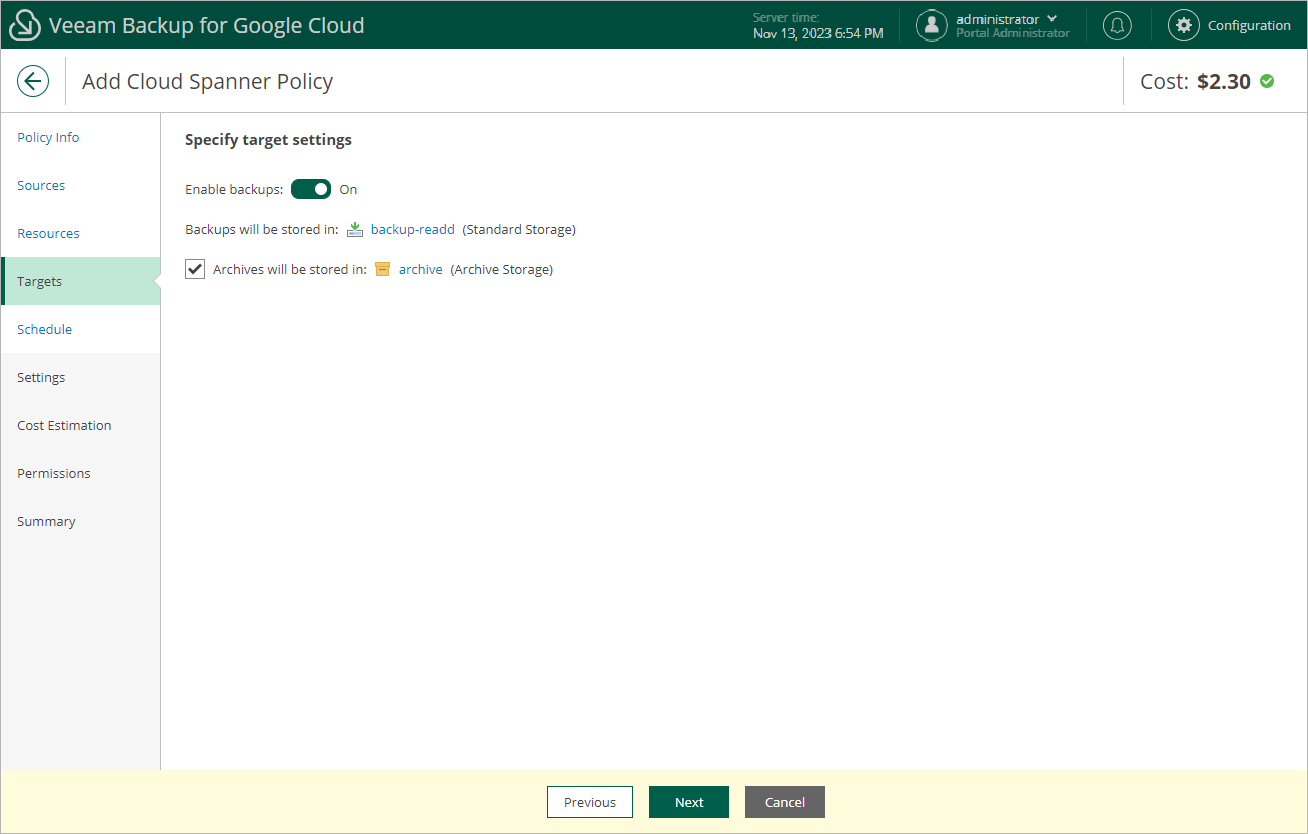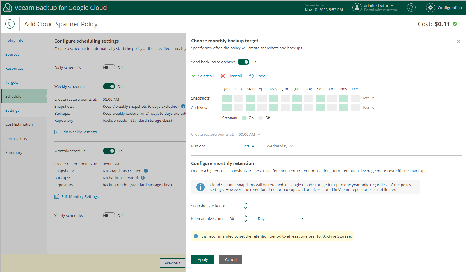 Veeam Backup for Google Cloud will propagate these settings to the archive schedule (which is the monthly schedule in our example).