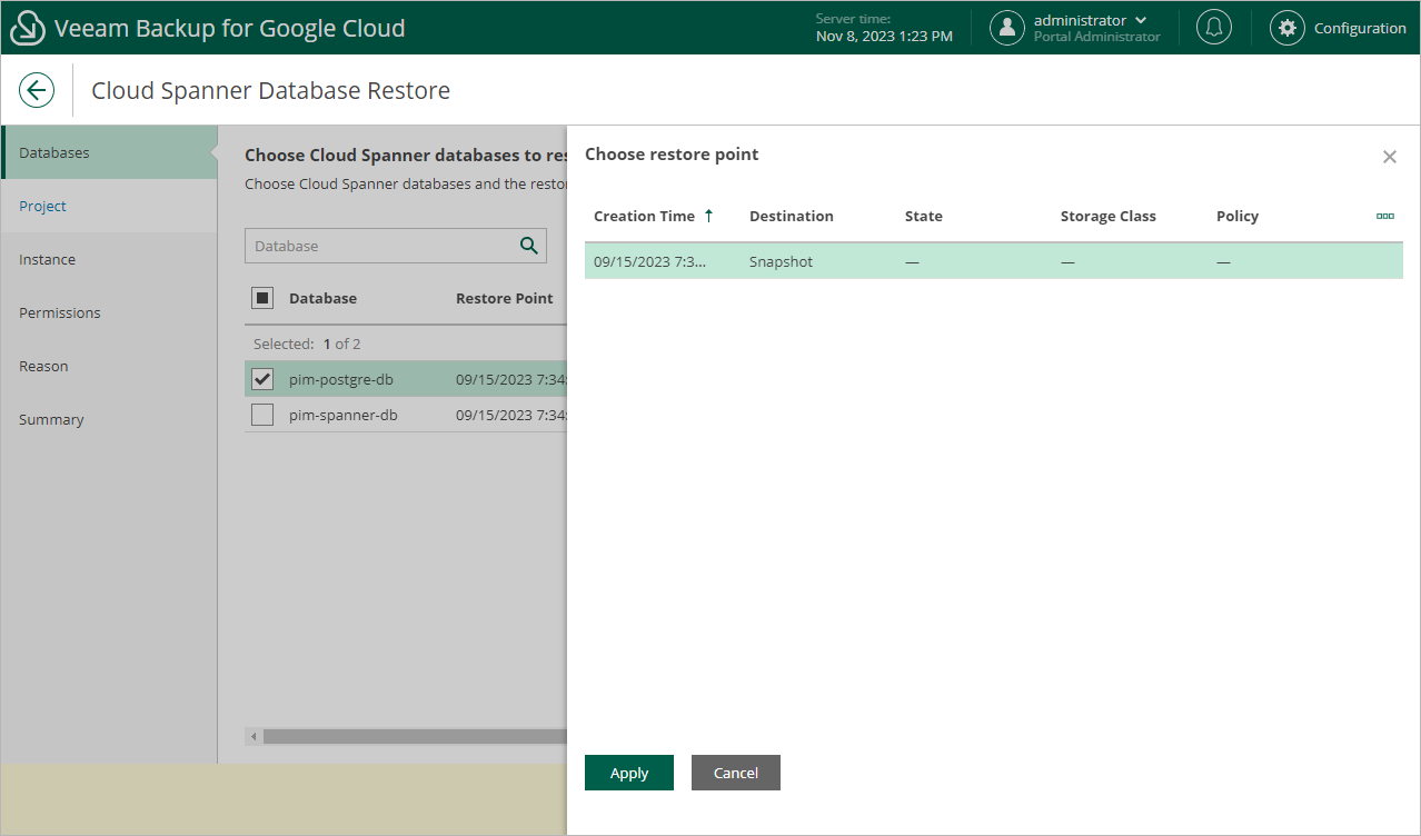 To help you choose a restore point, Veeam Backup for Google Cloud provides the following information on each available restore point: