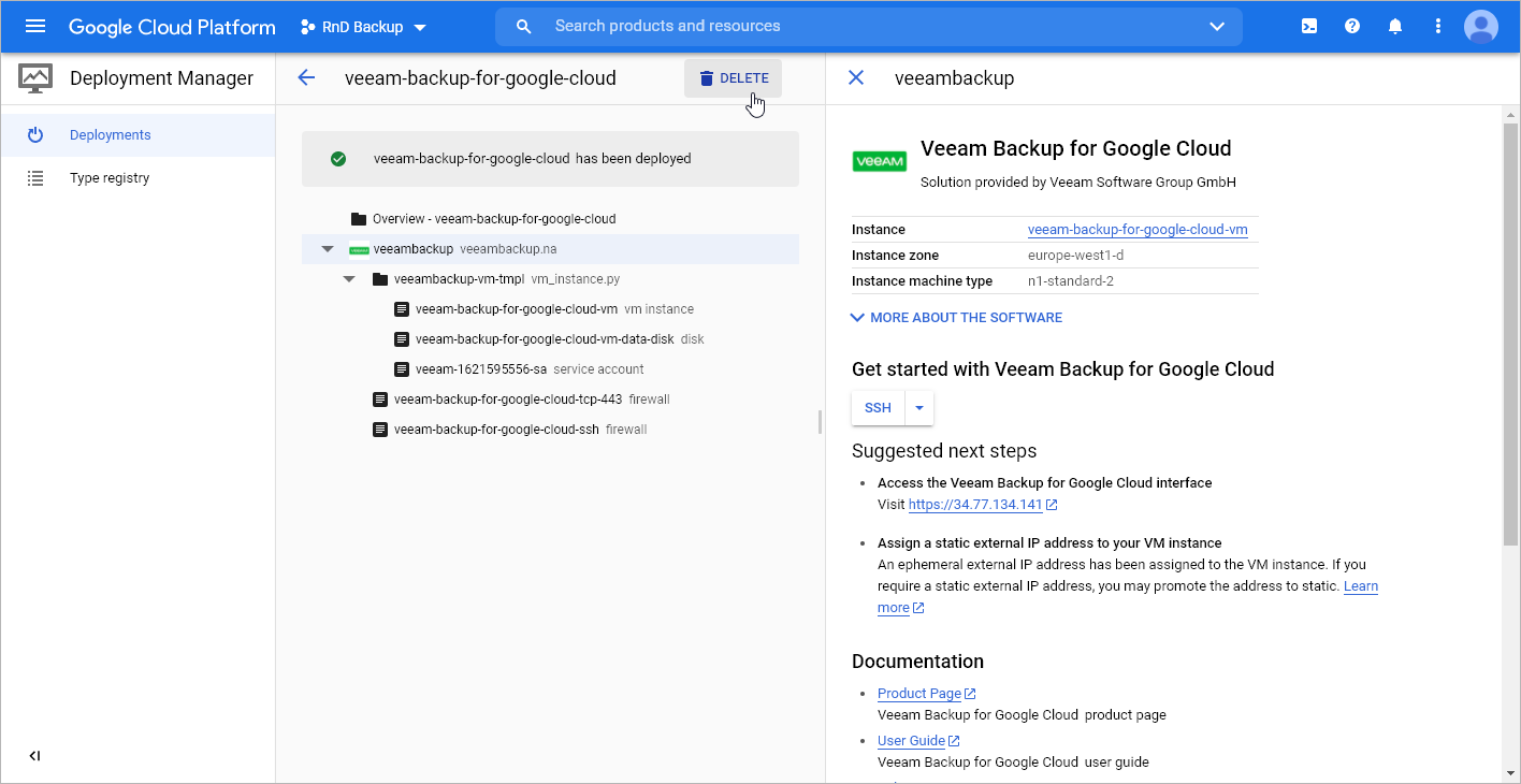Veeam Backup for Google Cloud creates a number of resources while operating in Google Cloud, and these resources are not removed from Google Cloud automatically when you uninstall the solution. That is why you must perform the following steps to uninstall Veeam Backup for Google Cloud: