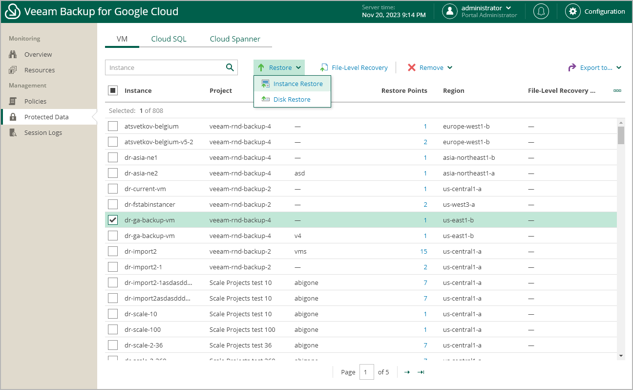 This is an archive version of the document. To get the most up-to-date information, see the current version. Step 1. Launch VM Instance Restore Wizard To launch the VM Instance Restore wizard, do the following:Navigate to Protected Data > VM.Select the VM instance that you want to restore, and click Restore > Instance Restore.