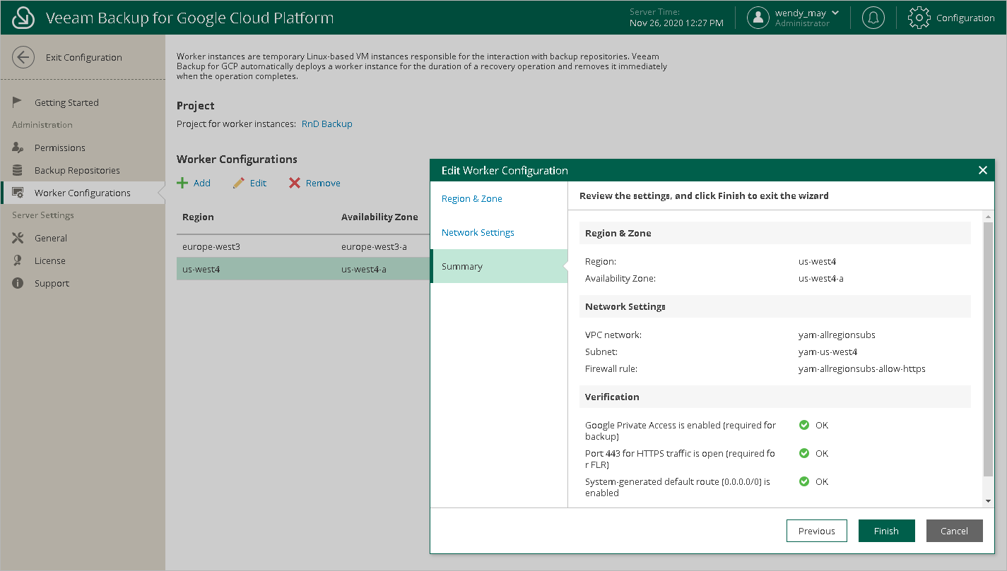 For each worker configuration, you can modify settings specified while adding the worker configuration to the Veeam Backup for GCP infrastructure: