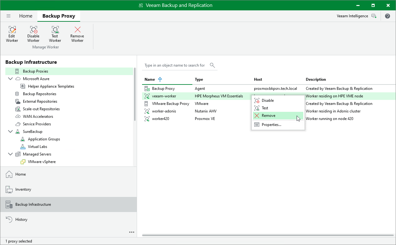 Veeam Backup & Replication allows you to permanently remove workers if you no longer need them. Note that you can remove a worker only when it is not processing a backup or restore operation.