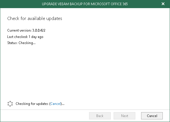 - Wait until Veeam checks whether a newer version is available. To abort the request, click Cancel.