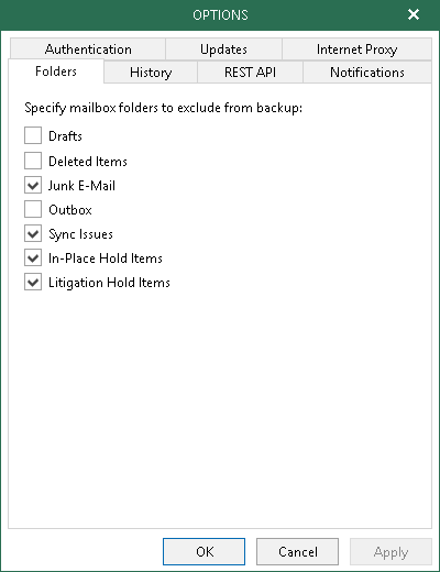 Veeam Backup for Microsoft Office 365 allows you to exclude certain folders from a backup.