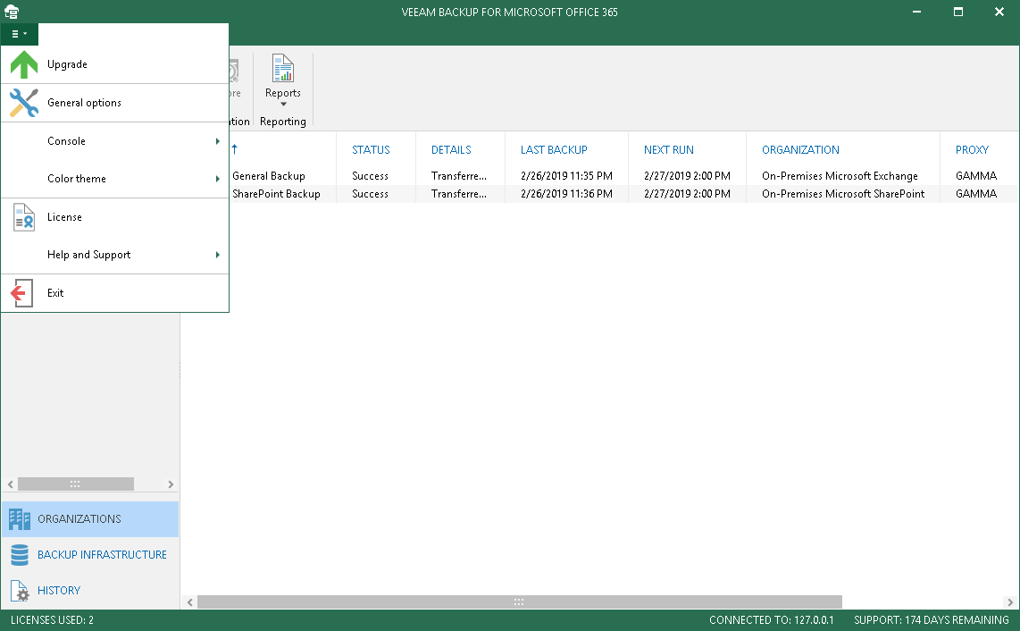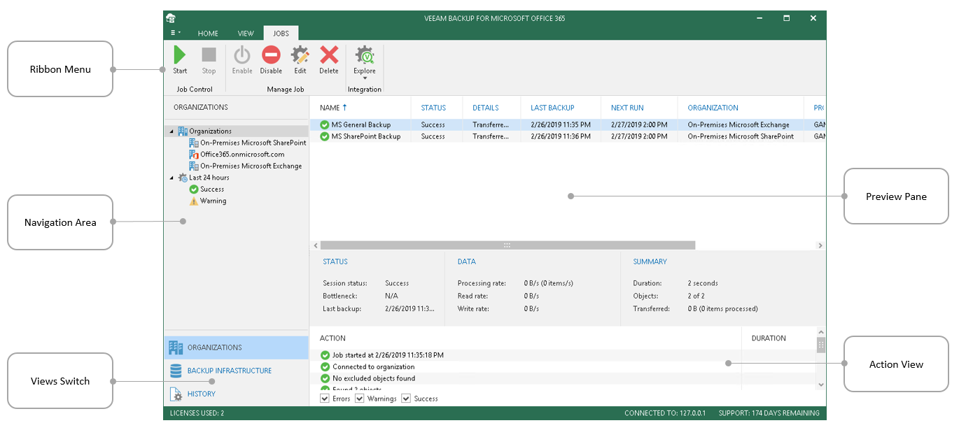 Continue with this section to learn more about the Veeam Backup for Microsoft Office 365 user interface.