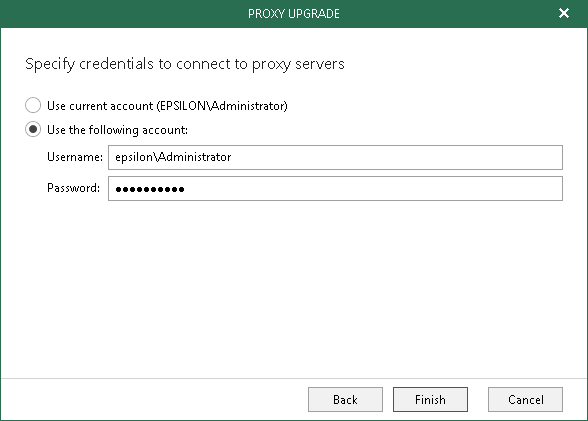 At this step of the wizard, specify authentication credentials to access the backup proxy server.