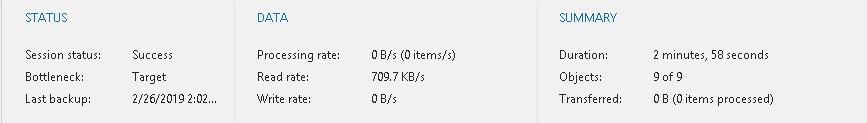 - Objects. Shows how many objects have been backed up during the session.