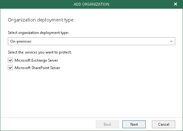 At this step of the wizard, select a deployment type and on-premises service that you want to protect.