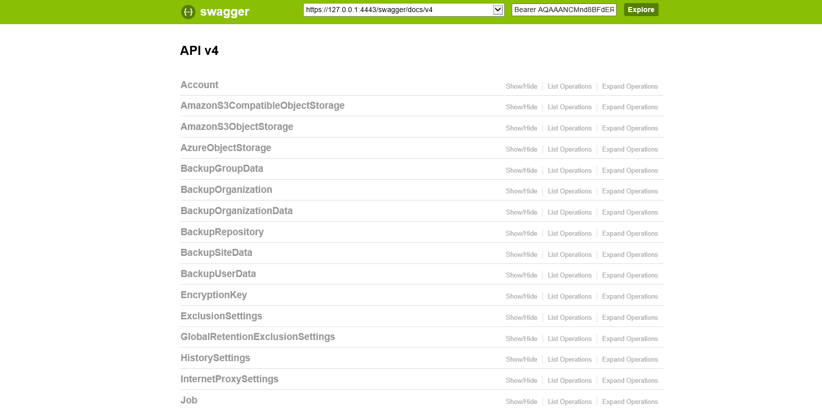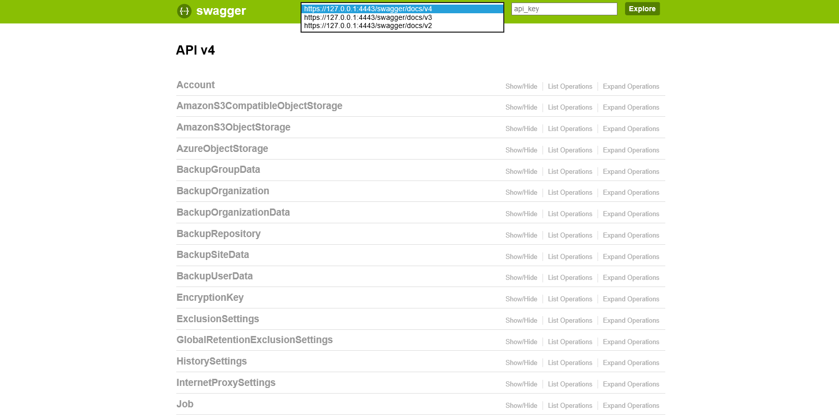 You can utilize Swagger UI to evaluate capabilities of Veeam Backup for Microsoft Office 365 RESTful API. The Swagger UI framework allows to interact with Veeam Backup for Microsoft Office 365 RESTful API in a sandbox UI. With such approach, you can test how the API responds to parameters and requests.