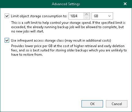 - Select the Limit object storage consumption to check box and specify the limit value.