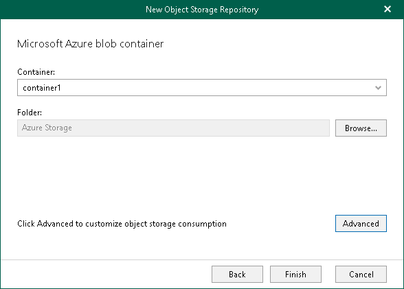 Make sure that the container you want to use to store your data was created in advance; Veeam Backup for Microsoft Office 365 does not support creating new containers.