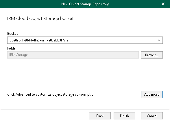 At this step of the wizard, specify an object storage bucket and folder where you want to keep your backup data.