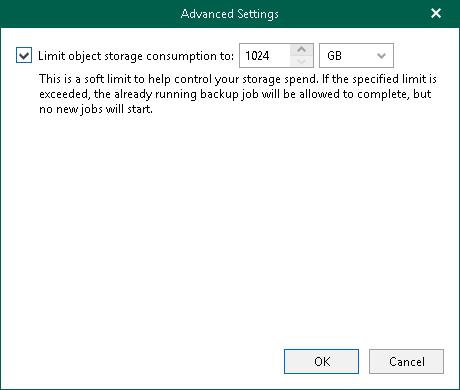 - Select the Limit object storage consumption to check box and specify the limit value.