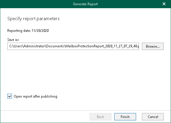 - Select the Open report after publishing check box to open the generated report using the default application.