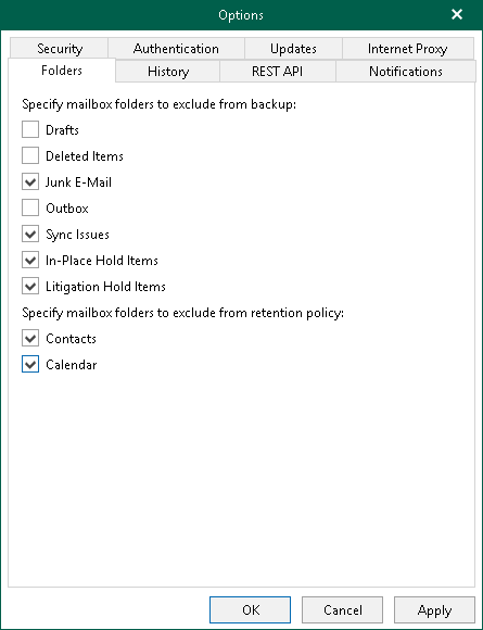 - In the Specify mailbox folders to exclude from backup section, select check boxes next to folders that you want to exclude from a backup.