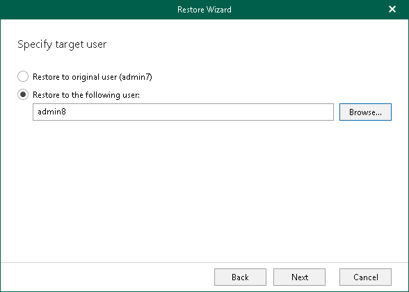 This is an archive version of the document. To get the most up-to-date information, see the current version. Step 4. Specify Target User At this step of the wizard, specify a target user where you want to copy data.