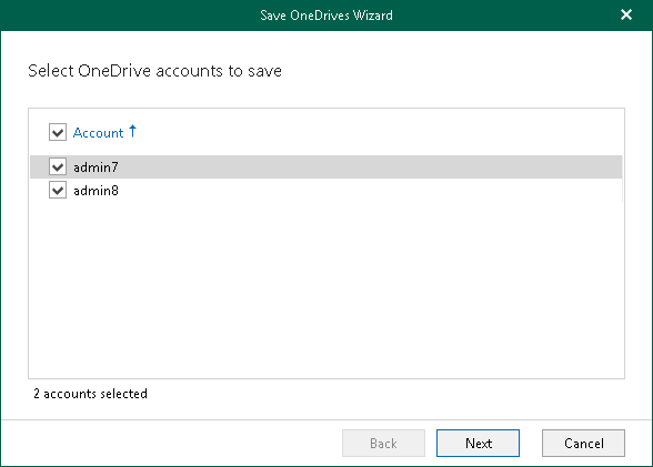 - [For multiple OneDrives] In the Save OneDrives wizard, select OneDrive accounts to save.
