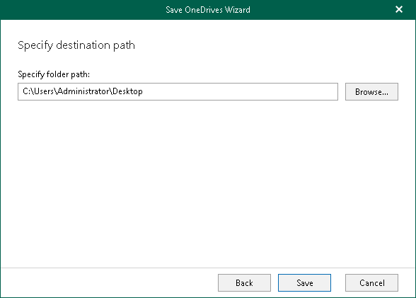 Veeam Explorer for Microsoft OneDrive for Business allows you to save OneDrive content to the specified location.