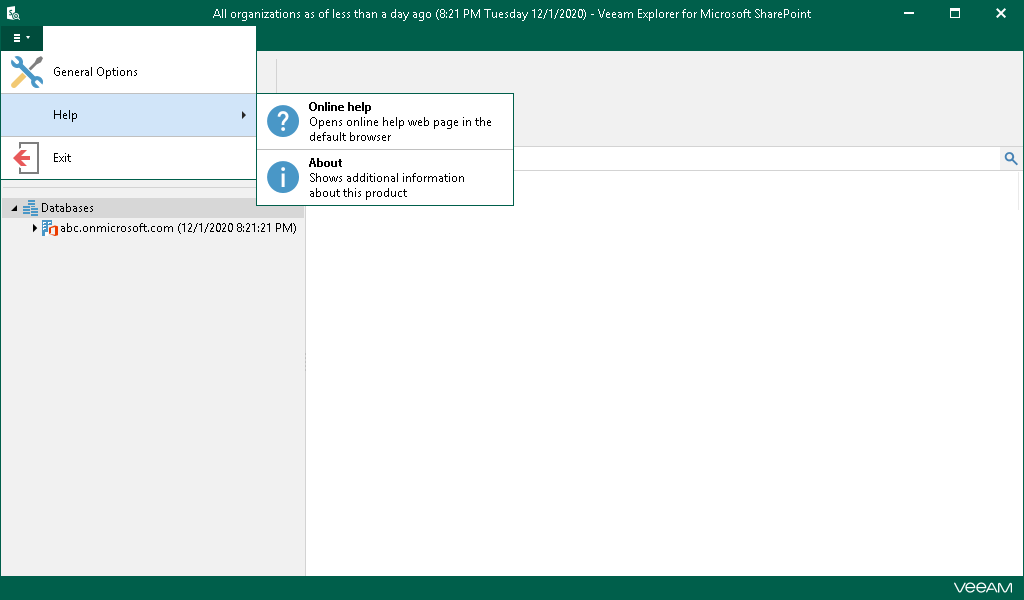 Veeam Explorer for Microsoft SharePoint provides you with the convenient user interface that allows you to perform required operations in a user-friendly manner.