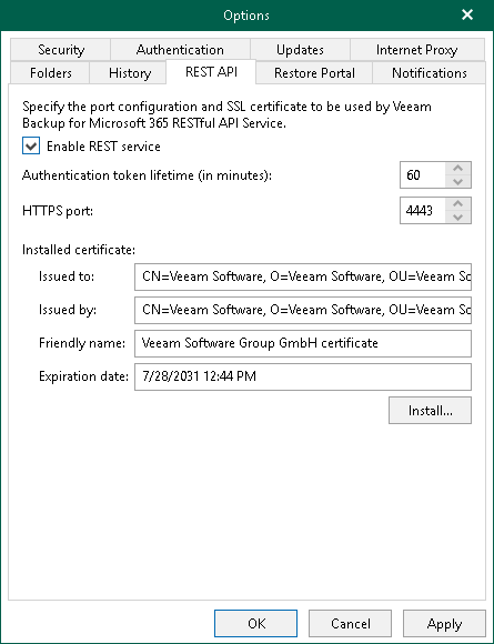 To configure Veeam Backup for Microsoft 365 REST API settings, do the following: