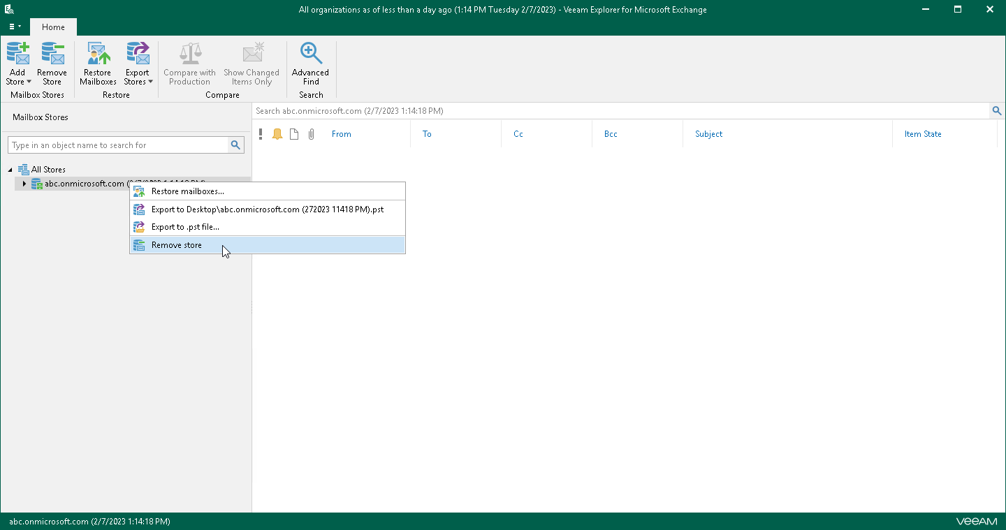 Veeam Explorer for Microsoft Exchange allows you to remove an Exchange store from the application scope when you no longer need it.