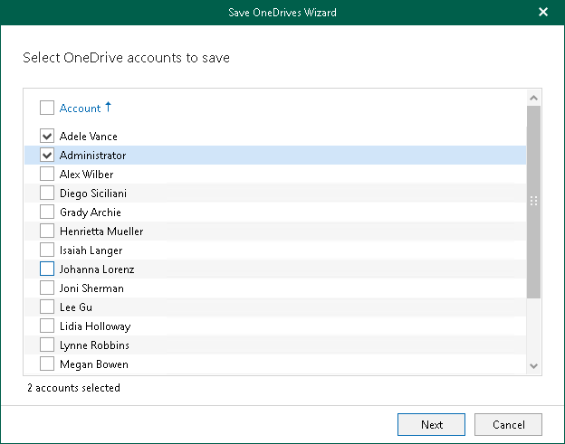 - In the Save OneDrives Wizard wizard, select OneDrive accounts to save.