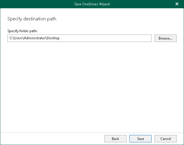 Veeam Explorer for Microsoft OneDrive for Business allows you to save OneDrive content to the specified location.