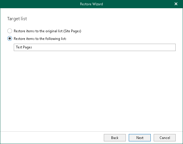If the specified list does not exist, Veeam Explorer for Microsoft SharePoint will create it automatically.