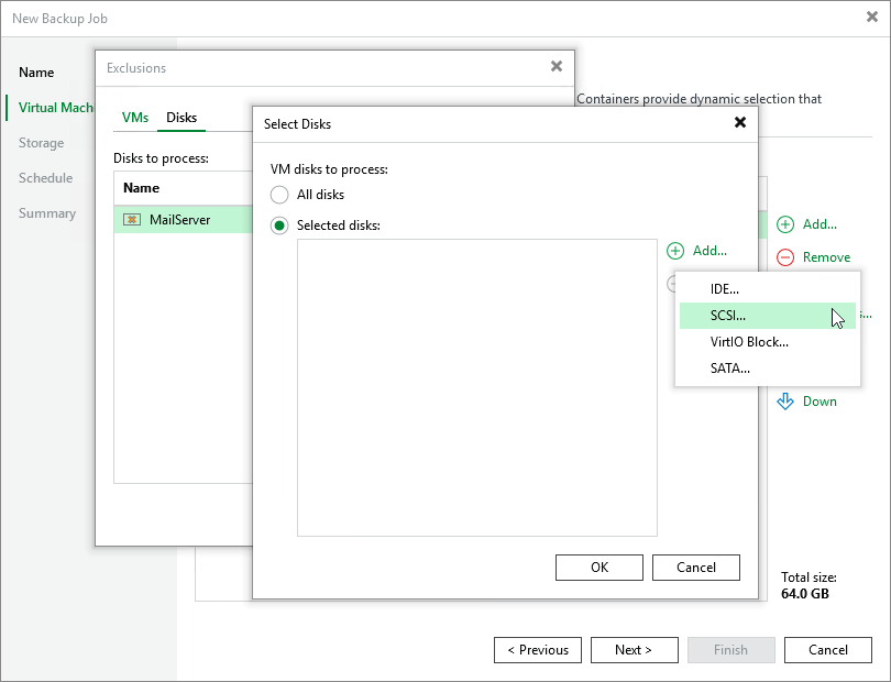 By default, jobs process all disks and volume groups attached to VMs included into the backup scope. However, you can instruct Veeam Backup & Replication to back up only specific virtual disks and volume groups related to the selected backup scope: