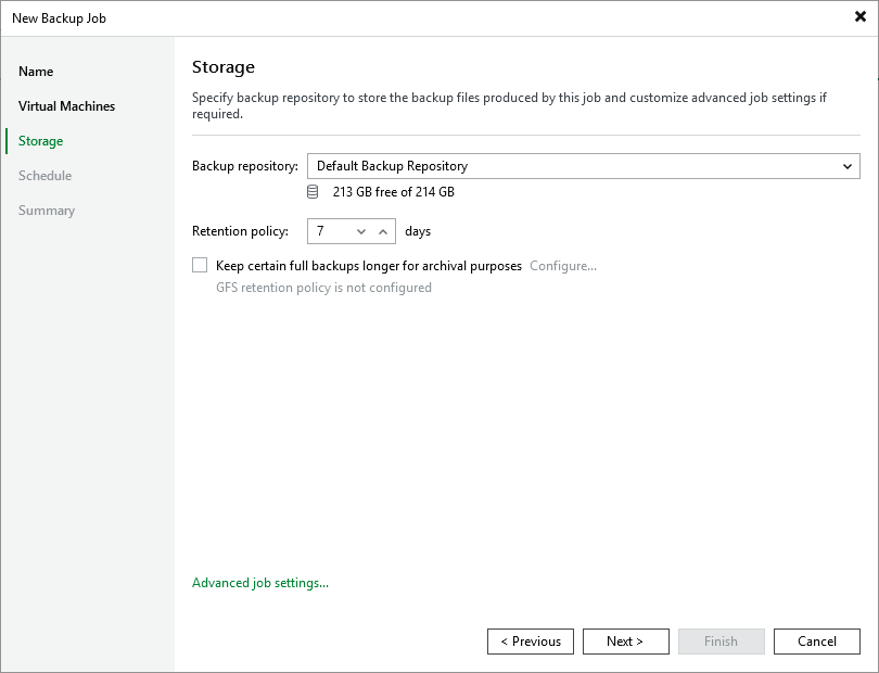To help you implement a comprehensive backup strategy, Veeam Backup & Replication allows you to enable long-term retention policy for backups and to configure advanced job settings (such as notification settings, health check, active and synthetic full backups).
