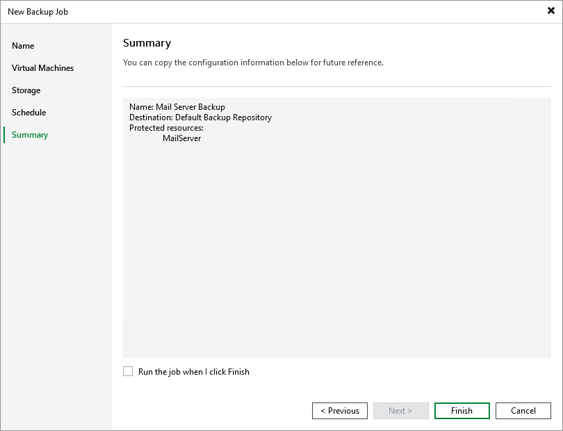 If you want to start the job immediately, select the Run the job when I click Finish check box and then click Finish. |
