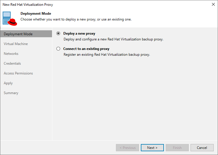 At the Deployment Mode step of the wizard, select the Deploy a new proxy option.