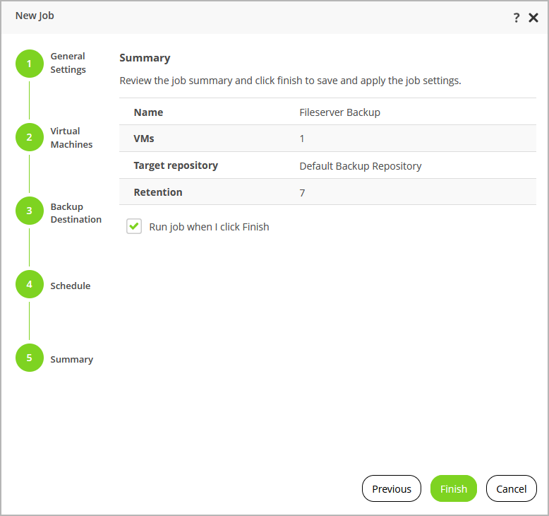 If you want to start the job immediately, select the Run job when I click Finish check box and then click Finish. |