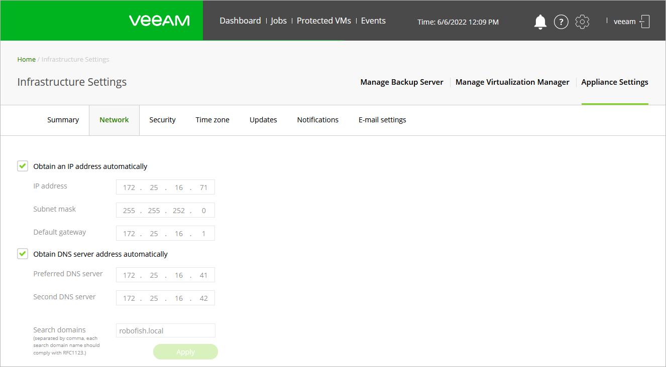 - If DHCP is enabled for the network adapter, the IP address and DNS settings of the RHV backup proxy can be obtained automatically.
