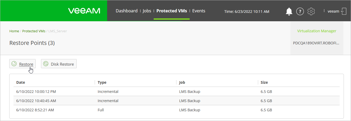 This is an archive version of the document. To get the most up-to-date information, see the current version. Step 1. Launch Full VM Restore Wizard To launch the Full VM Restore wizard, do the following:Switch to the Protected VMs page.Click the VM that you want to restore.On the Restore Points page, click Restore.