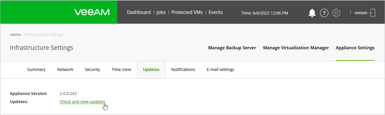 Veeam Backup for RHV automatically notifies you about newly released product versions and package updates available for the operating system running on the backup proxy. However, you can check for the available updates manually if required: