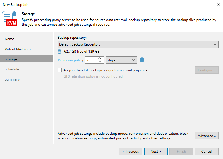 To help you implement a comprehensive backup strategy, Veeam Backup for OLVM and RHV allows you to enable long-term retention policy for backups and to configure backup job advanced settings (such as backup maintenance, health check, active and synthetic full backups).