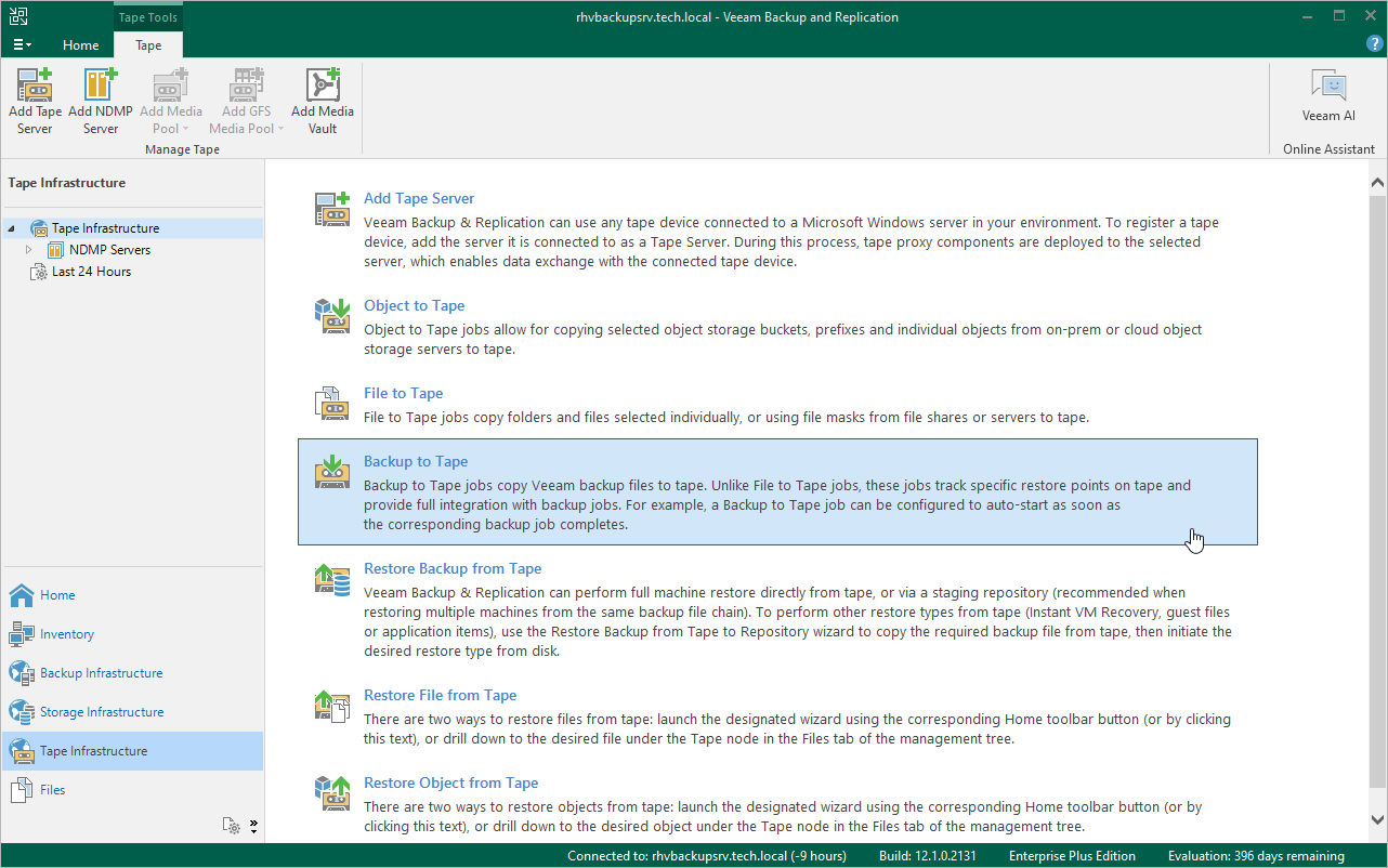 - Perform initial configuration of the tape infrastructure as described in the Veeam Backup & Replication User Guide, section Getting Started with Tapes (steps 1–3).