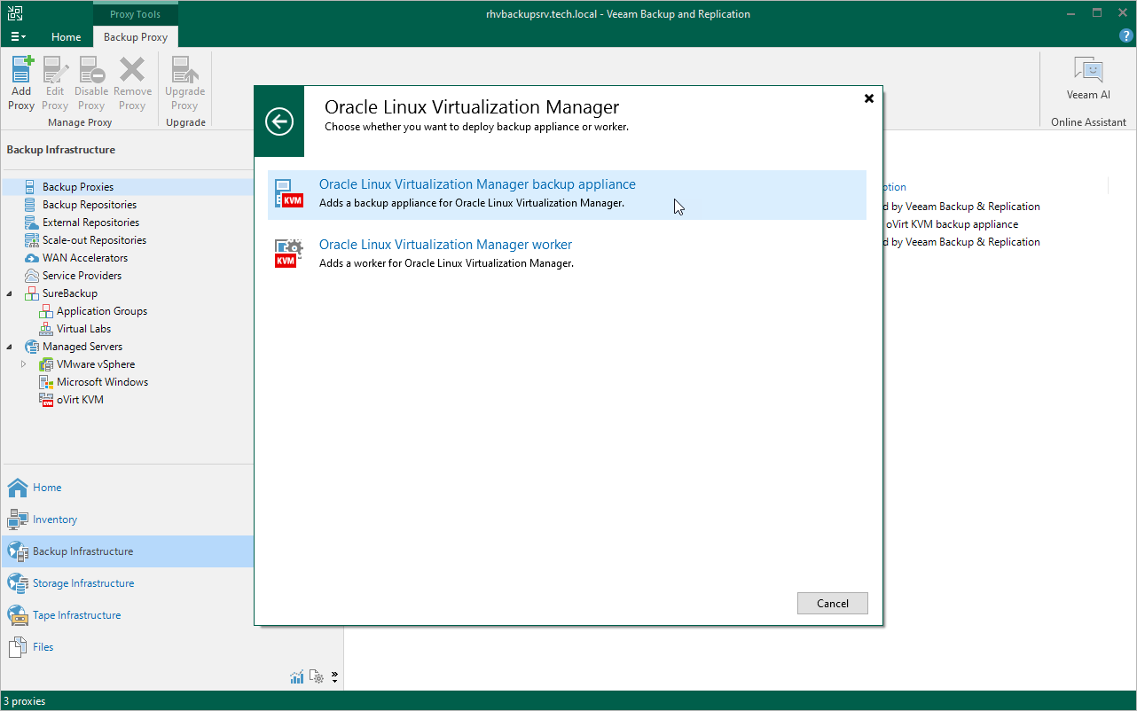 To launch the New oVirt KVM Backup Appliance wizard, do the following: