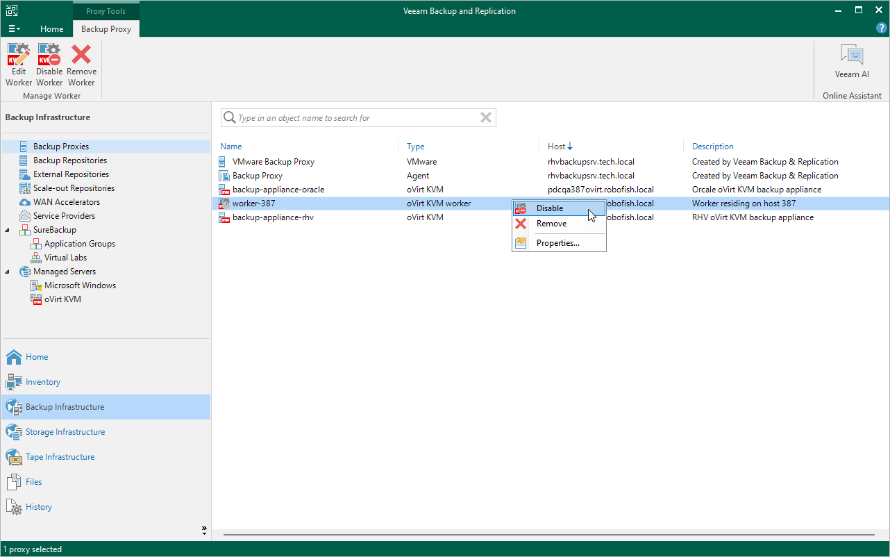 2. In the inventory pane, select Backup Proxies.