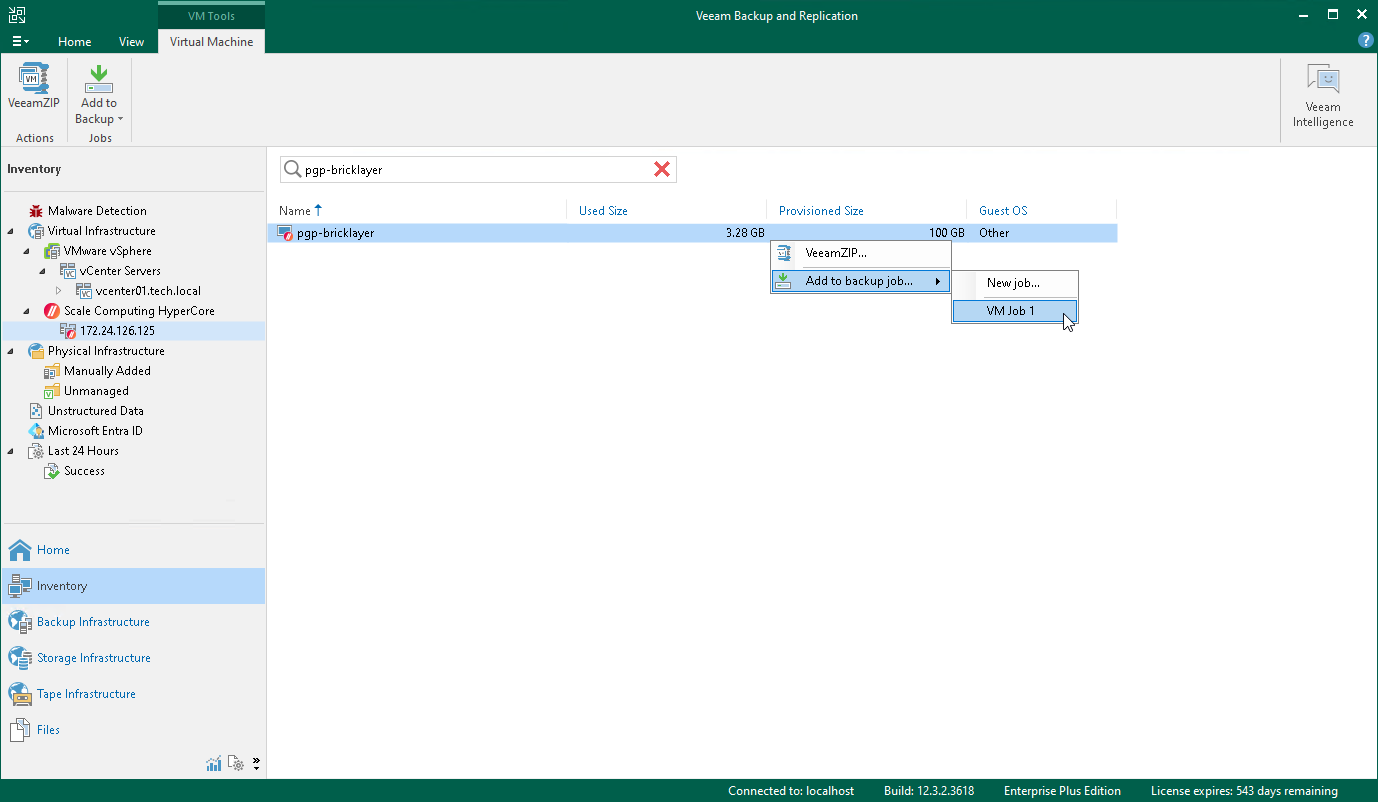 Alternatively, right-click the VM and select Add to backup job.