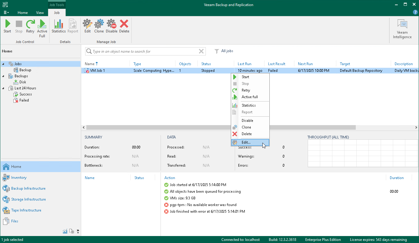 - To change the backup repository where backups are stored, to configure backup job retention settings, to schedule active and synthetic full backups, to configure health checks and email notifications, follow the instructions provided in the Step 4. Specify Backup Job Settings section.