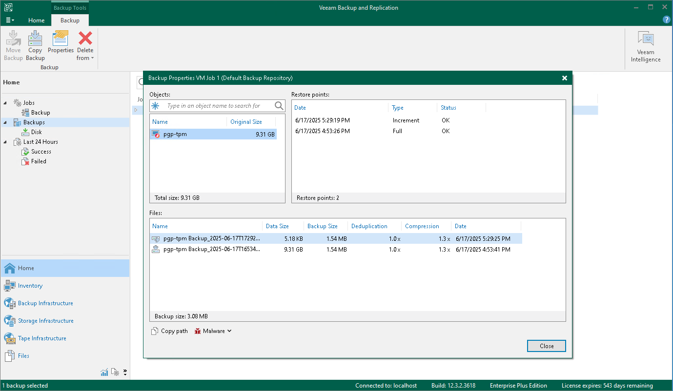 After a backup job successfully creates a VM backup according to the specified schedule, or after you create an active full VM backup manually, the backup is displayed under the Backups node in the Home view of the Veeam Backup & Replication console. Each backup is represented with a set of properties, such as: