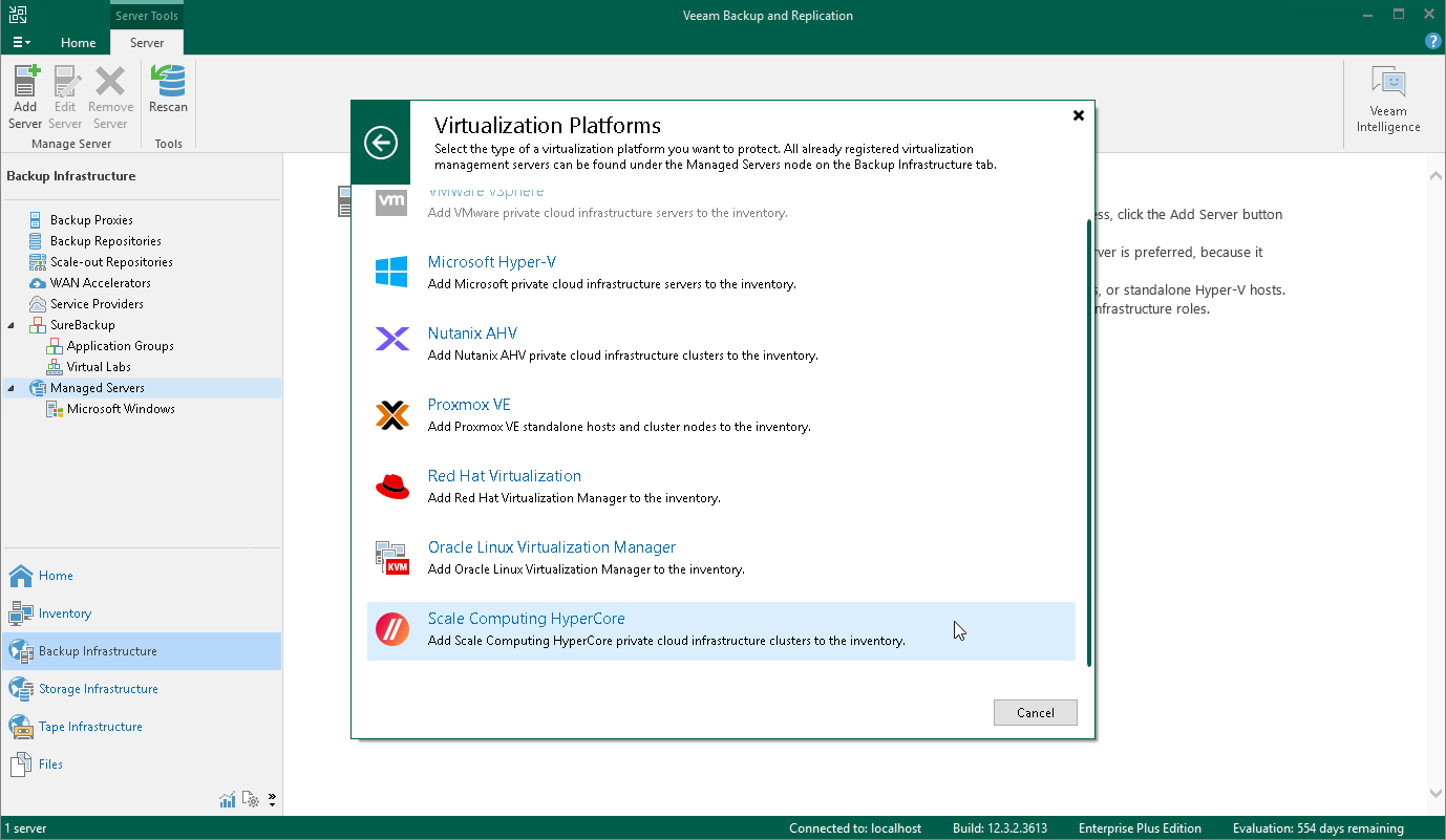 - In the Virtualization Platforms window, select Scale Computing HyperCore.