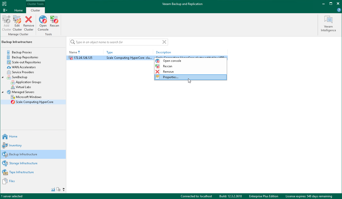 To edit properties of the Scale Computing HyperCore cluster added to the backup infrastructure, do the following: