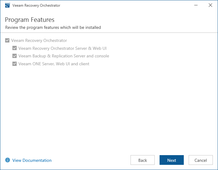 This is an archive version of the document. To get the most up-to-date information, see the current version. Step 4. Review Components to Install At the Program Features step of the wizard, review Orchestrator components to be installed.
